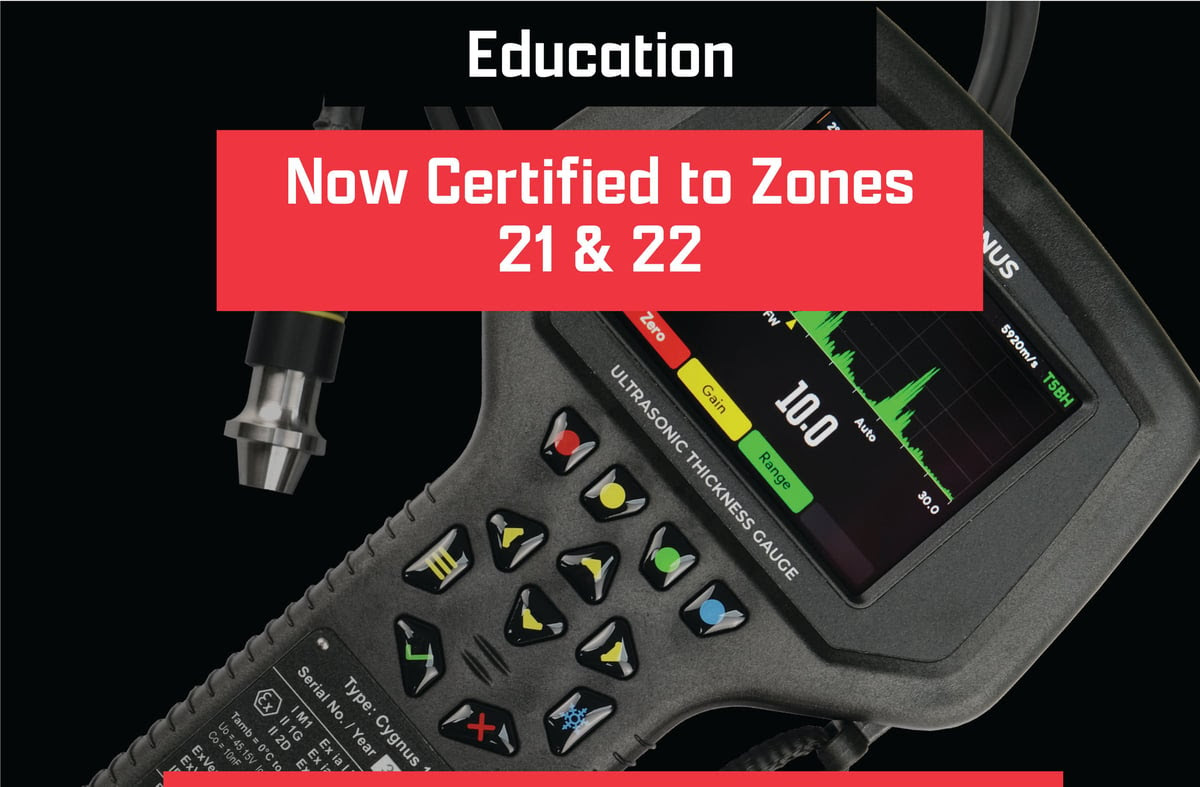 so can therefore, be used to take thickness measurements safely where there is a high concentration of dust in the air! This means…. Zone 21 identifies areas where combustible dust is occasionally present. Zone 22 identifies areas where combustible dust is not usually present but could be for short periods. Cygnus 1 Ex has an Intrinsically Safe […]