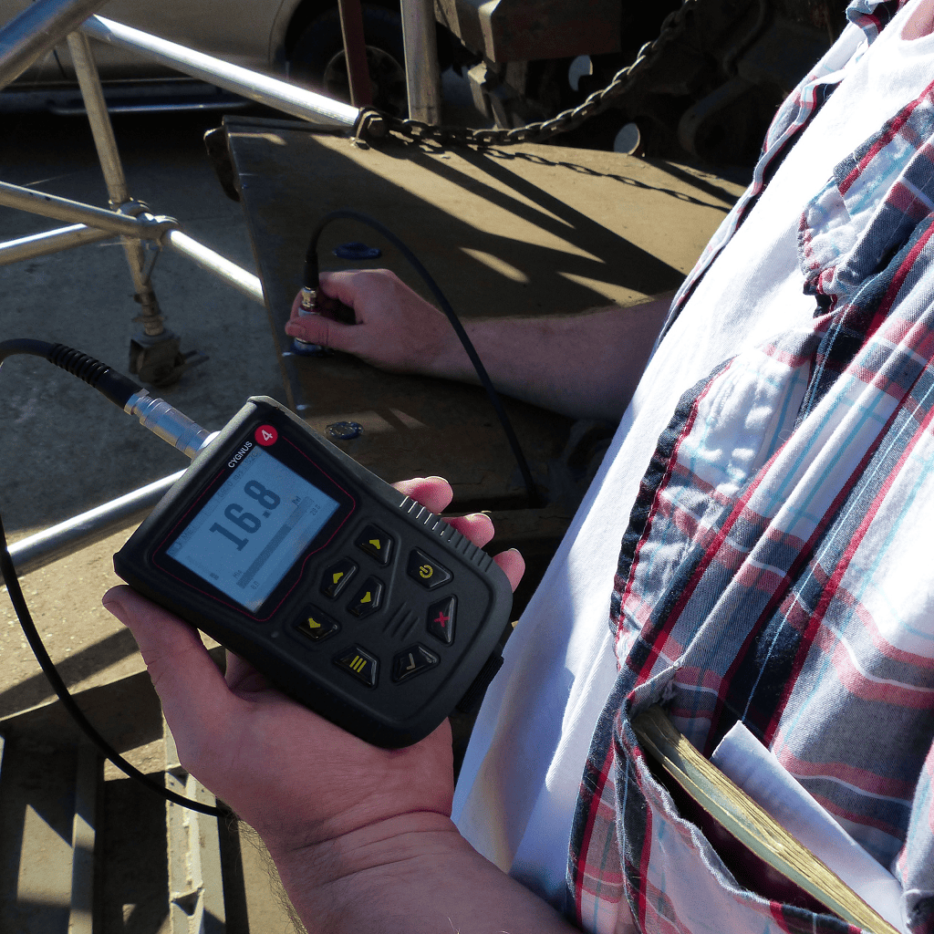 - Uses three return echoes to give a truly accurate, error-checked metal thickness measurement – ignoring coatings up to 0.8 inch (20 mm).
