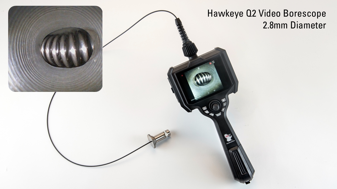 Gradient Lens Hawkeye® Q2 HD Video Borescope features diameters of 2.8, 3.9 and 6mm. The Q2 features new technology that will allow our customers to change insertion tubes, and offer a dual 0 and 90 camera view. The Q2 Video Borescopes offer 4-way joystick articulation, image and video capture, and 4 hour battery life combined with a compact, portable and durable design. Expanding on the popular Hawkeye V2 and V3, which were launched in 2012, the new Q2 incorporates technological advancements that expand the offering of video borescopes offered by Gradient Lens Corporation. The Q2 easily displays and captures crystal clear video and still images, and does so using a lightweight, and user-friendly compact design. The Q2 is a valuable tool for our customers who have a variety of length and diameters needs but don’t have the budget to purchase multiple systems.