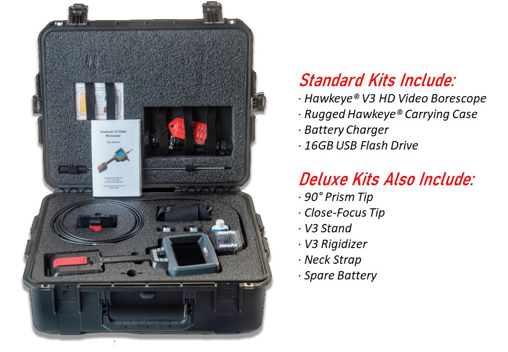 | V3 Standard Kits: Include V3 Video Borescope, Battery Charger, 16GB USB Flash Drive and Rugged Carrying Case | ||||
